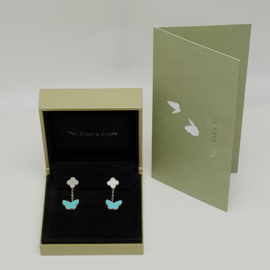 Boucles d’oreilles Van Cleef & Arpels Lucky Alhambra turquoise en or blanc