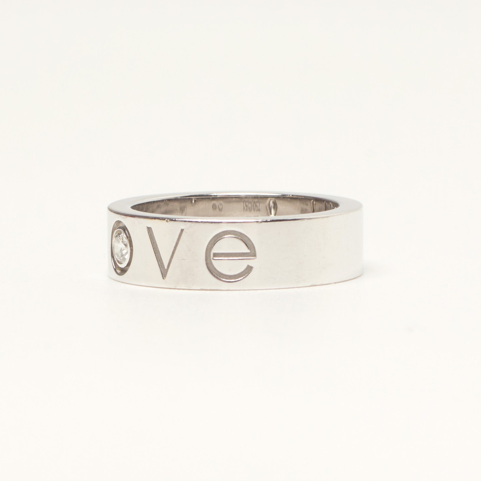 L'incontournable bague Cartier Love Classique en or blanc avec 1 diamant taille 51. Il s'agit d'une édition limitée avec 1 diamant dans le O de l'inscription LOVE.