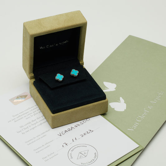 Boucles d’oreilles Van Cleef & Arpels Sweet Alhambra turquoise en or blanc