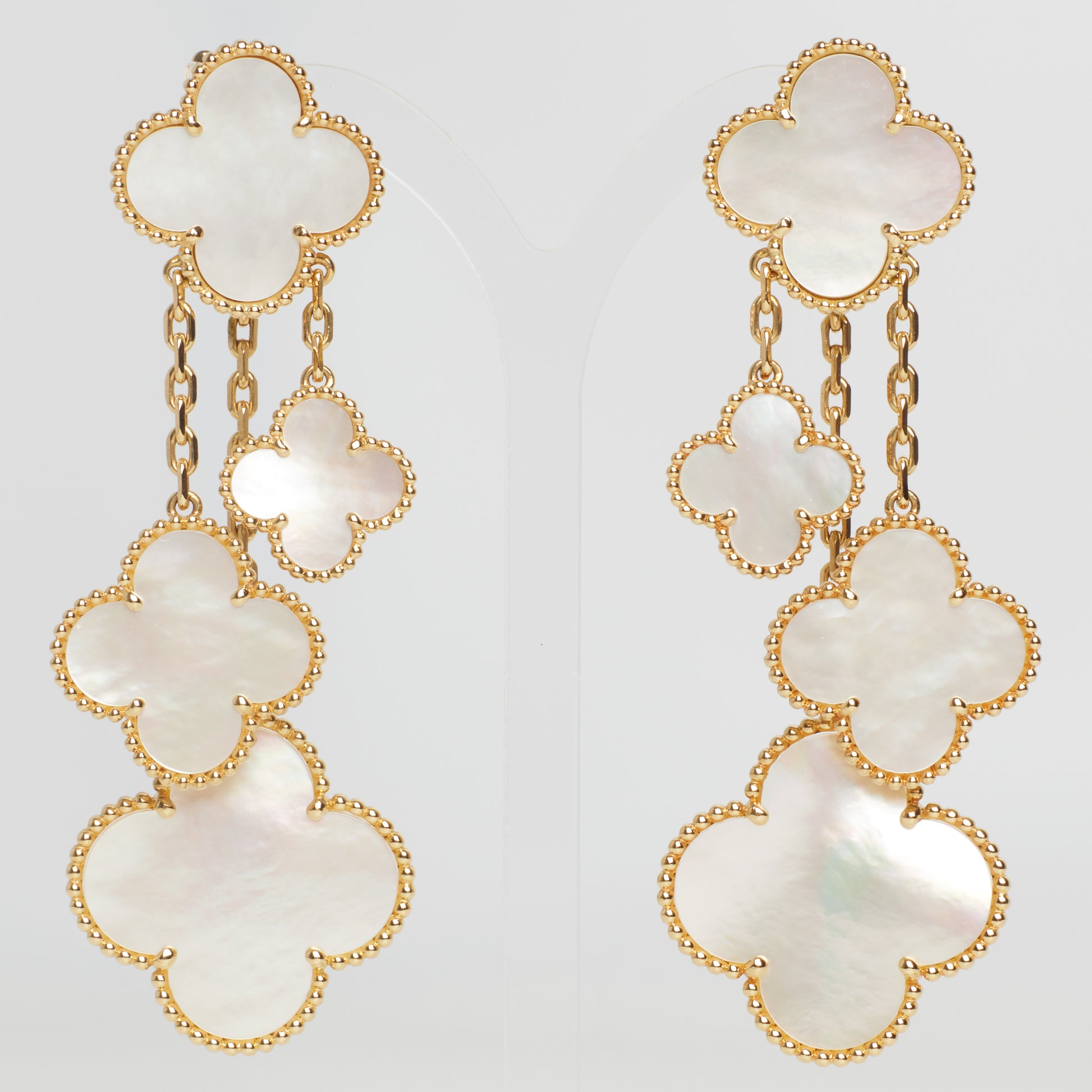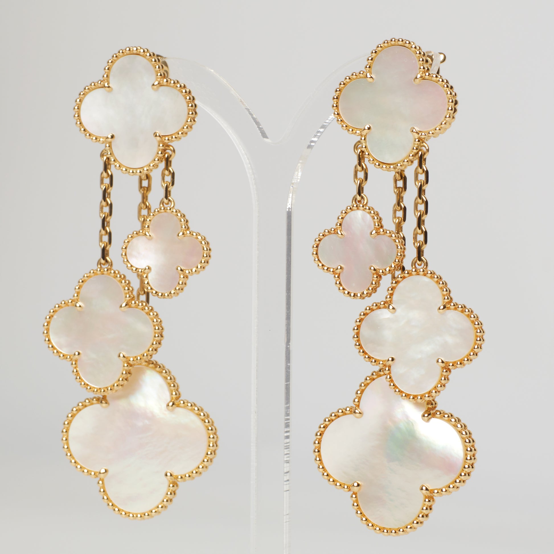Boucles d’oreilles Van Cleef & Arpels Magic Alhambra 4 motifs en or jaune et nacre