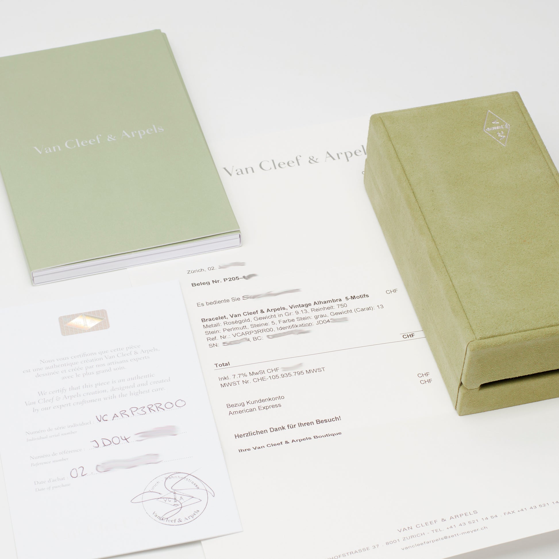 Bracelet Van Cleef & Arpels Special Order Vintage Alhambra 5 motifs nacre grise en or rose