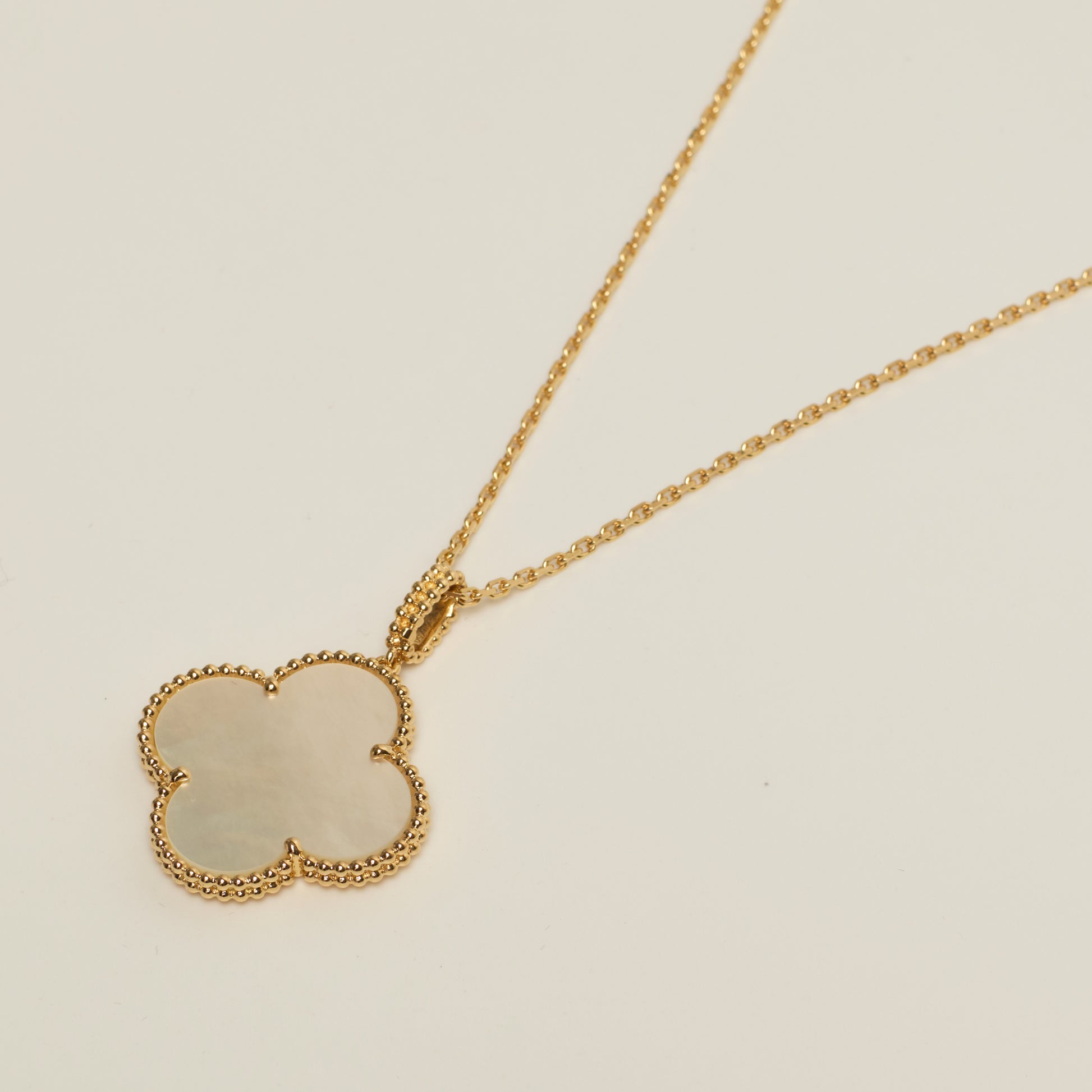 Sautoir Van Cleef & Arpels Magic Alhambra en or jaune et nacre blanche.